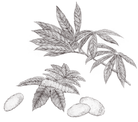 沖縄の地理的優位性(亜熱帯気候)が理由のひとつです。 亜熱帯地域の沖縄では、多くの植物種の露地栽培が可能です。私たちが飼育する沖縄エリ蚕のエサとなるキャッサバやトウゴマも年間を通して露地栽培ができます。これは、年間を通してのエサの確保へつながり、このことは沖縄エリ蚕を用いた製品の年間供給にもつながっています。